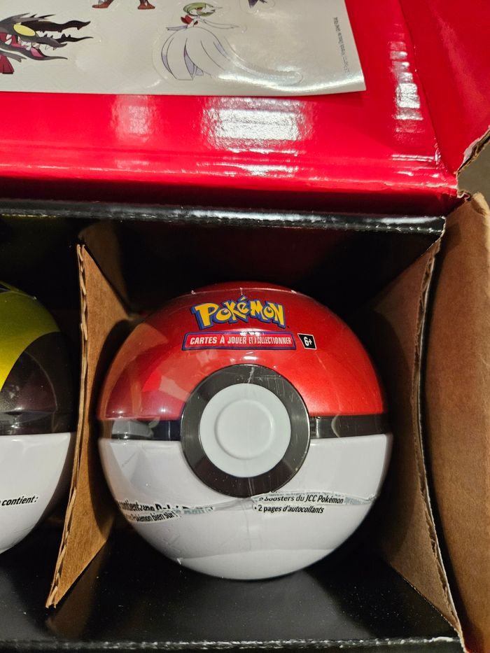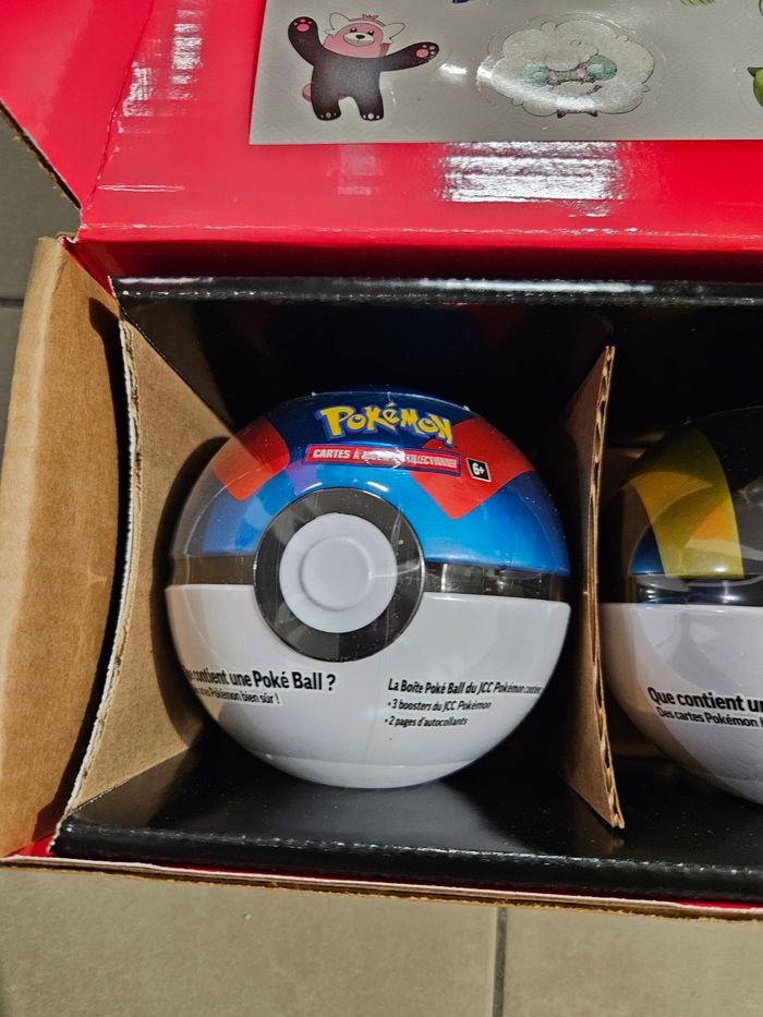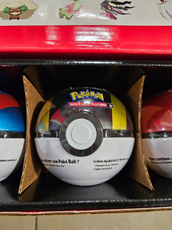 Ce lot de Boîtes Poké Ball contient 3 Boîtes Poké Ball du JCC Pokémon – 1 Poké Ball, 1 Super Ball et 1 Hyper Ball. Chaque Boîte Poké Ball contient 3 boosters aléatoires du JCC Pokémon et 2 pages d’autocollants individuelles.