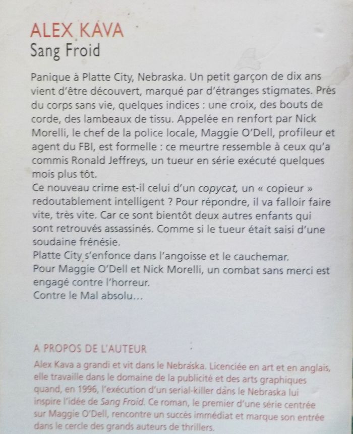 SANG FROID de Alex KAVA Ed. Harlequin Best Sellers HS Bon état Résumé en photo n°2