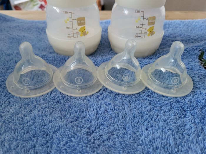 Bonjour, Je met en vente ces 2 biberons Mam Easy Start anti-colique 130ml avec 4 tétines débit 0 extra lent (nourrisson nouveau-né). Idéal pour bébé, plus d'information en photos 😉 📦 envoi Mondial Relay uniquement 😊 🛑 pas de retour, vous achetez ce qui est dans l'annonce et rien de plus 🌺 réductions de lot activées, troc possible, n'hésitez pas, tout doit partir 😉