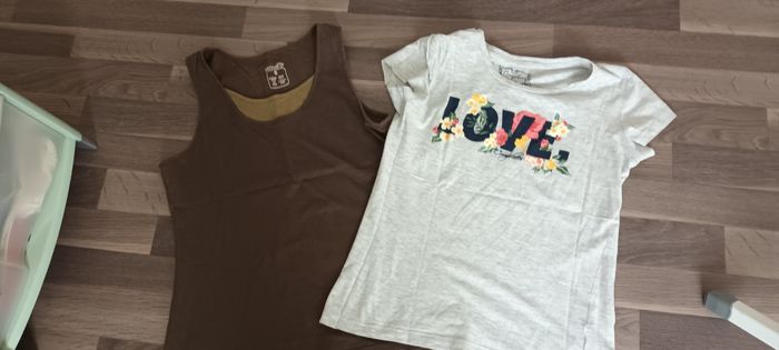 Un débardeur marron et kaki t s.coton .esmara. et un Tee-shirt gris complices t s.