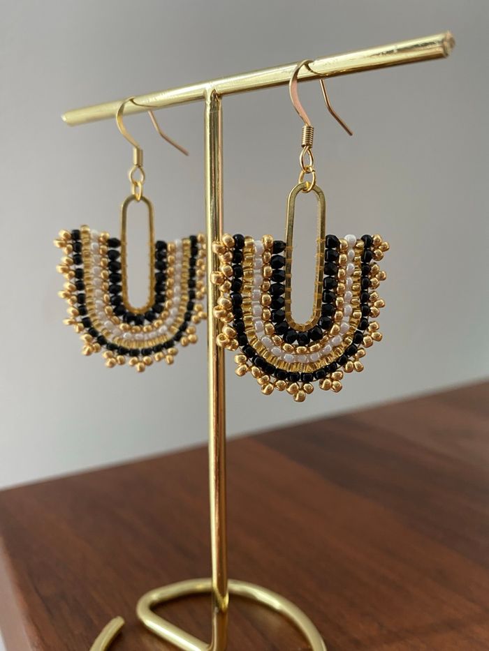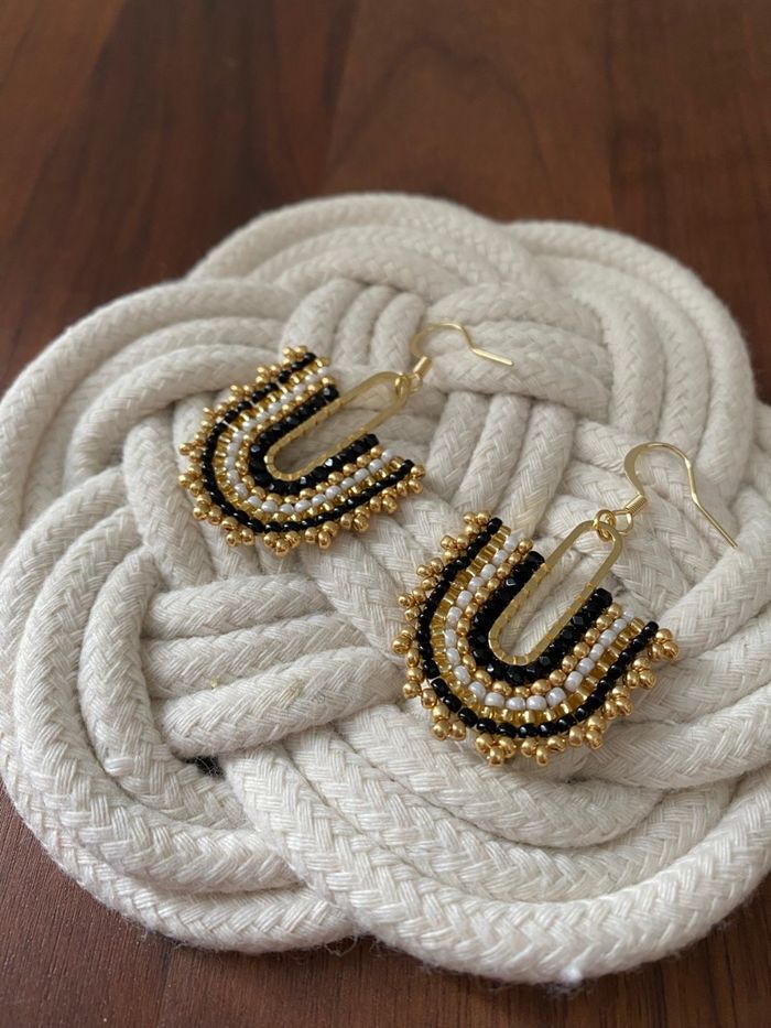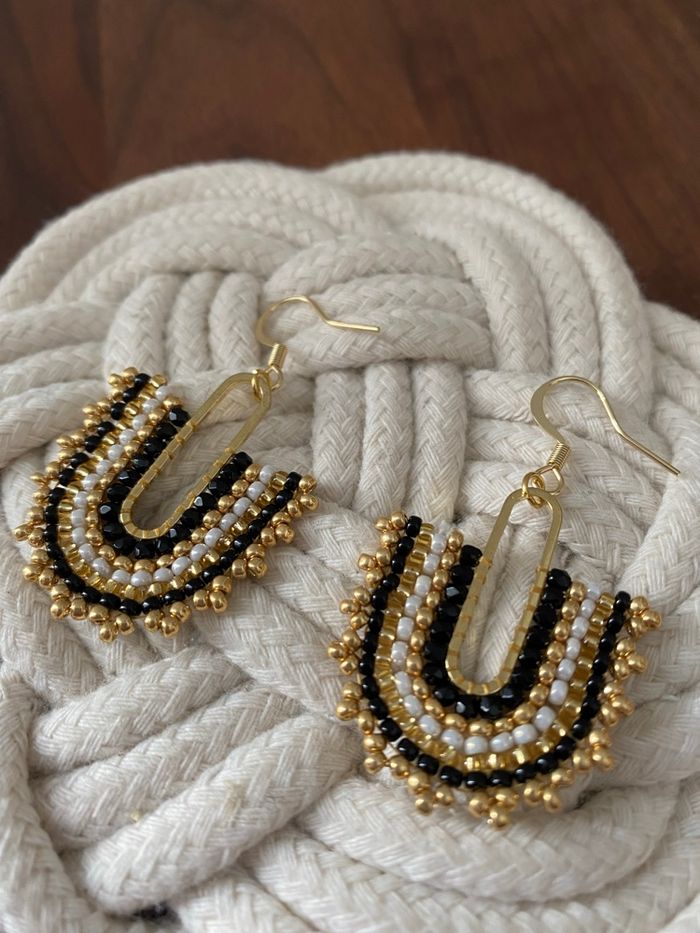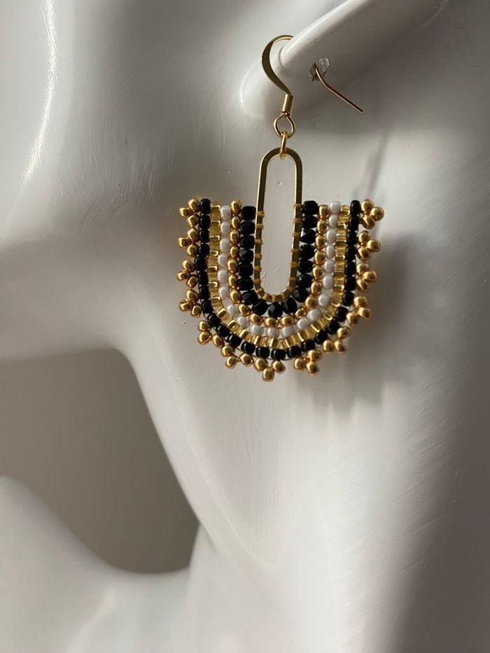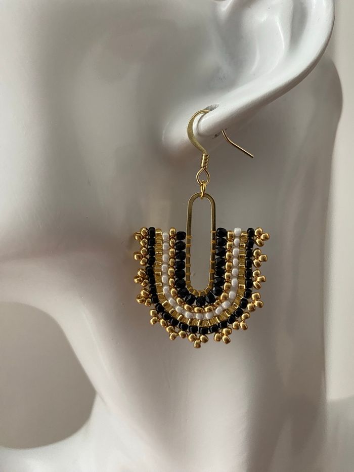 Boucles d’oreilles Miyuki Crochets d’oreilles et supports en acier inoxydable dorés à l’or fin. Longueur totale des boucles d’oreilles environ 5 cm Article neuf.
