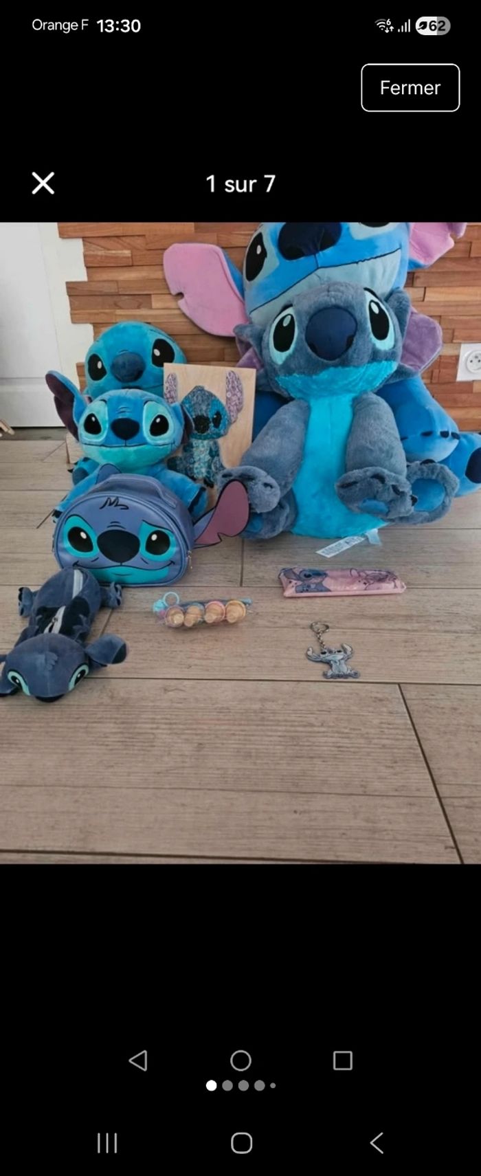 Lot stitch. 3peluches.2 petites peluches Veilleuse Pinces cheveux Veilleuse Trousse, marqueurs ect....