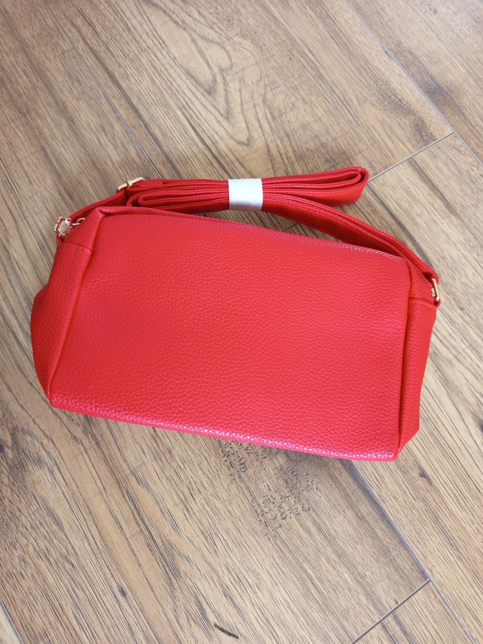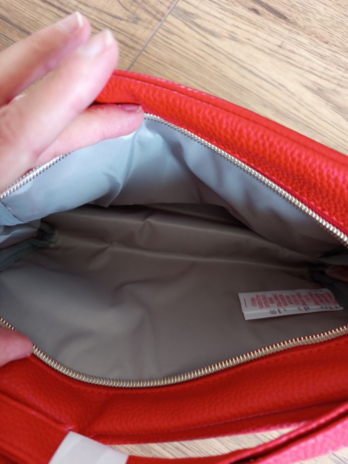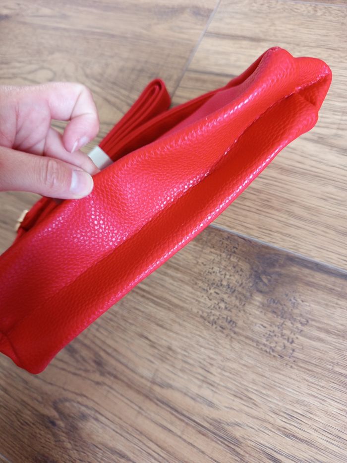 Sac à main rouge Longueur sac : 22 cm Largeur sac : 7 cm Fermeture éclair dorée intérieur doublé gris clair 1 poche au devant avec fermeture éclair neuf jamais utilisé