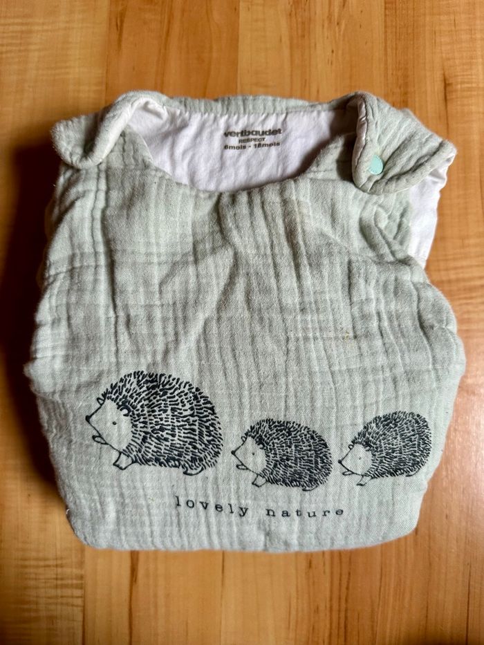 Gigoteuse / Turbulette / Grenouillère 6 - 18 mois Elle est en gaze de coton bio. Très bon état. Encore en vente en magasin neuf à 44,99€.