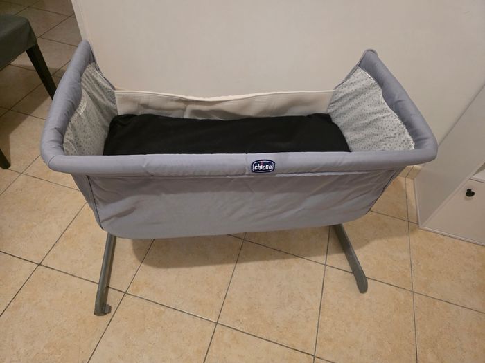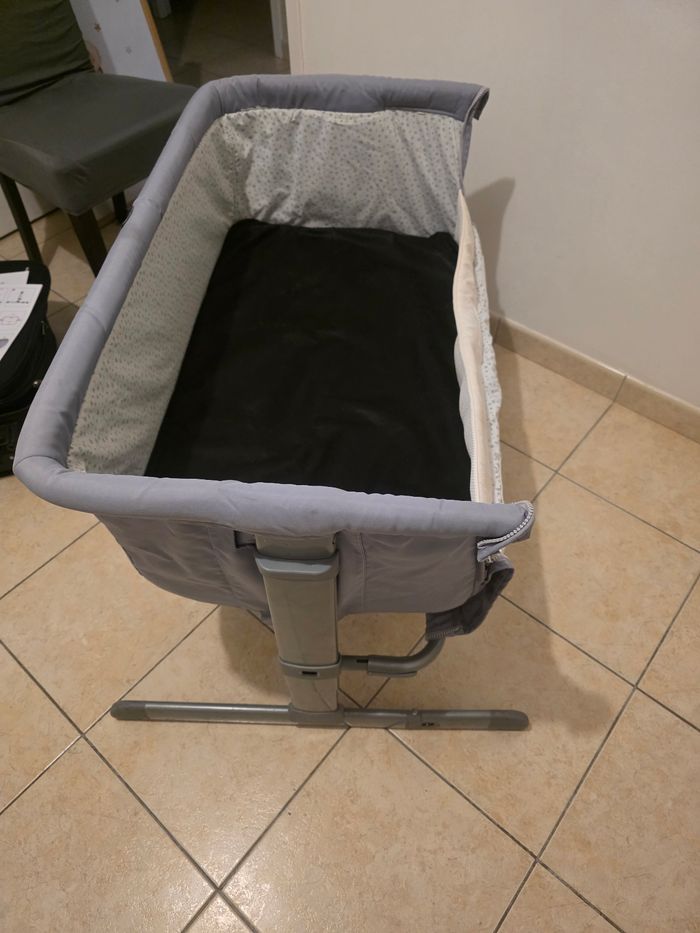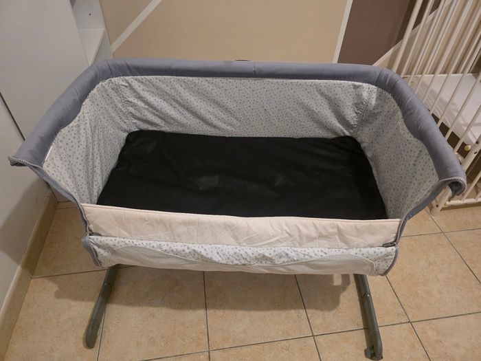 Bonjour, je vends ce lit cododo de la marque Chicco Next2Me en bon état. Quelques défauts au niveau des pieds ( peinture un peu abîmer)et tissu un peu abîmer ( voir photo) Plusieurs hauteurs, peut s'incliner et également bouger grâce aux roulettes. Vendu avec un matelas, il manque juste les sangles pour l'attacher au lit parental, mais vous pouvez en retrouver partout. Prix :45 euro