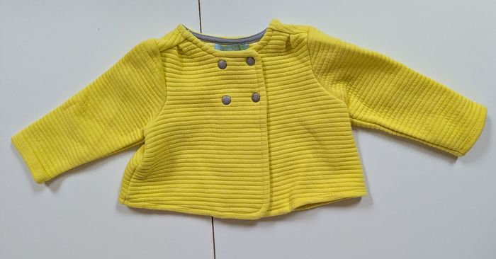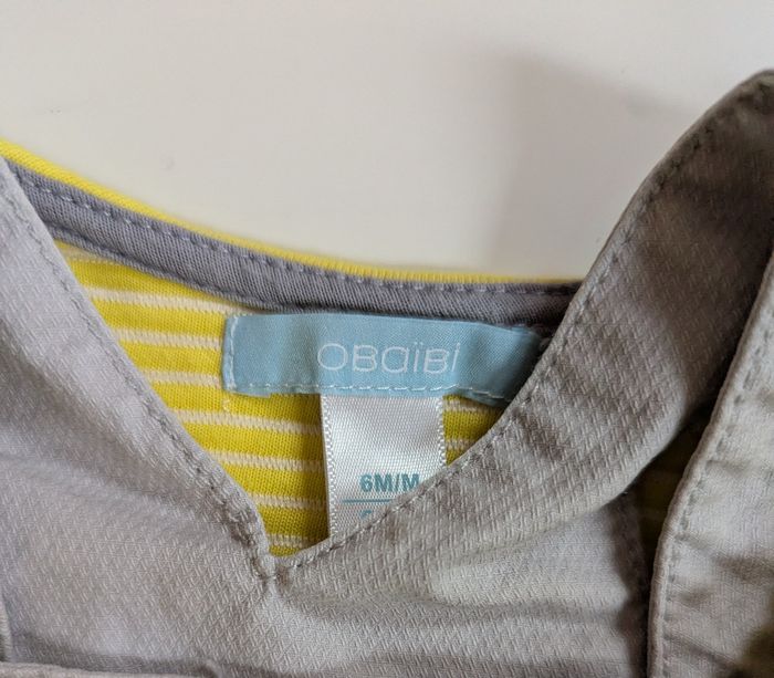 Vends ensemble Okaïdi obaibi avec robe grise, gilet jaune. Neuve Taille 6 mois