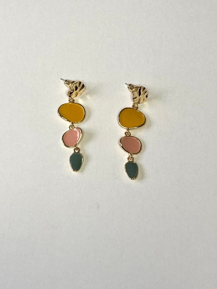 Boucles d'oreilles pendantes émaillées CXL by Christian Lacroix Fermoir poussette. Coloris : doré, jaune, rose et bleu Matière : alliage Neuves, jamais portées Prix boutique : 65€