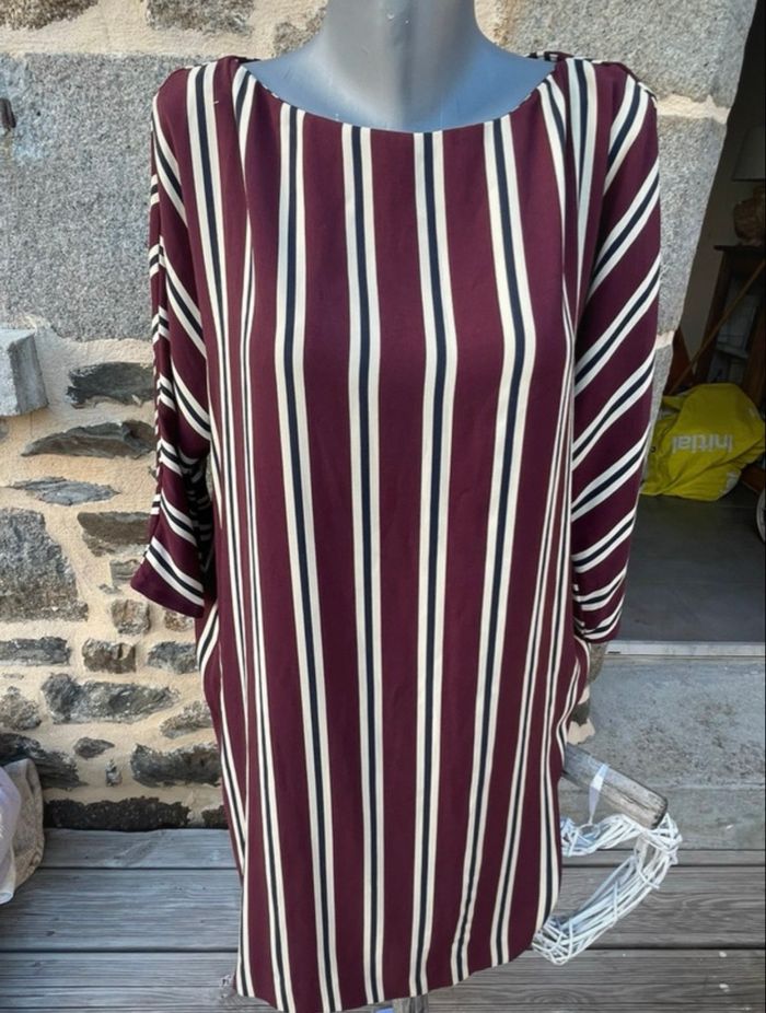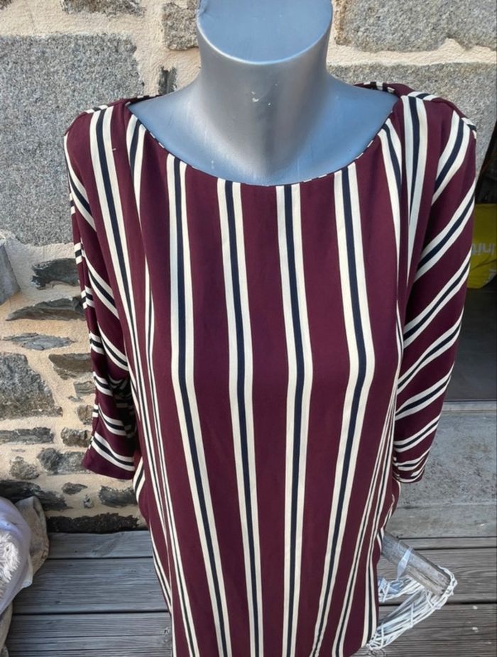 Robe bordeaux à rayure blanche et noir Manche longue Taille M Tres bonne état Mango