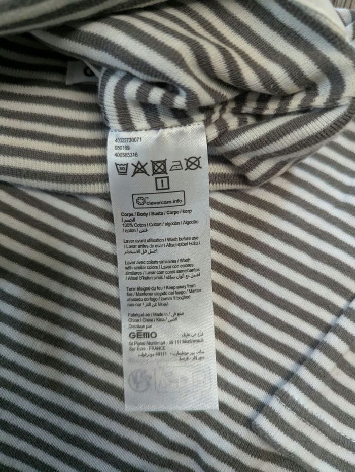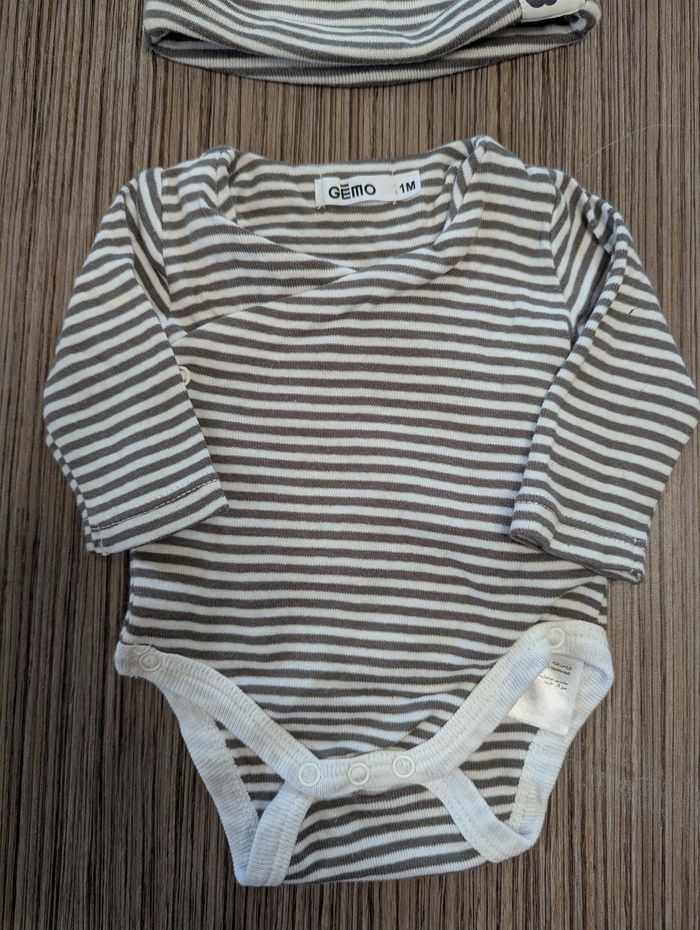 Ensemble body + bonnet À rayures noir et blanc Avec oreilles sur le bonnet Taille 1 mois Marque Gémo