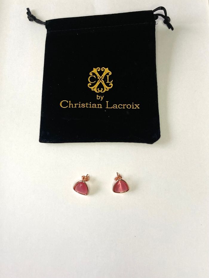 Boucles d'oreilles puces quartz rose by Christian Lacroix - photo numéro 1
