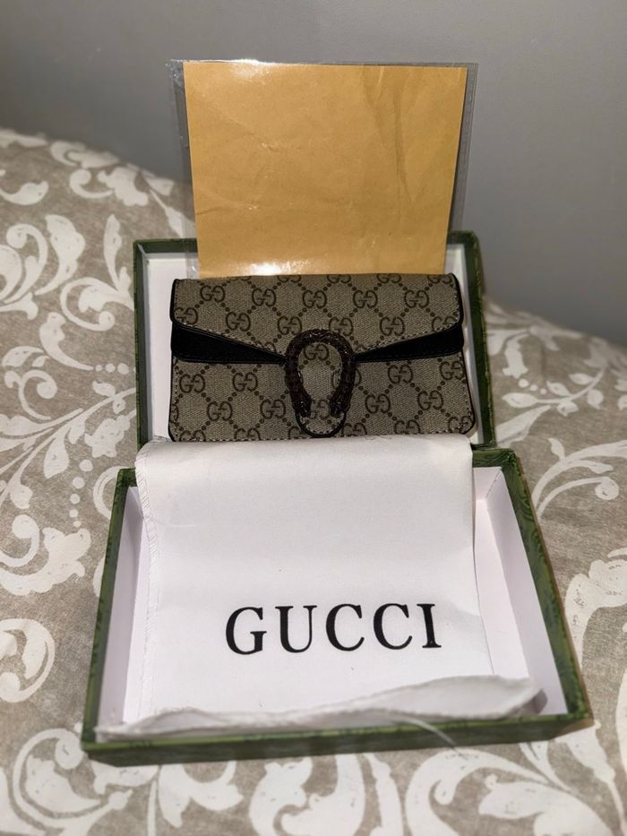 Sac Gucci neuf dans son emballage au top ✅ Modèle super jolie 😍 l 16,5 cm x H 10 cm x P 4 cm Envoie rapide et soigné garantie 🚚🚚 Prix 45€ Merci 😇