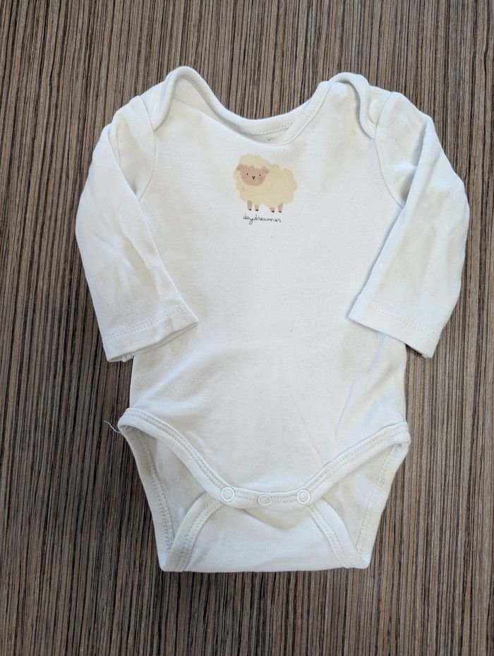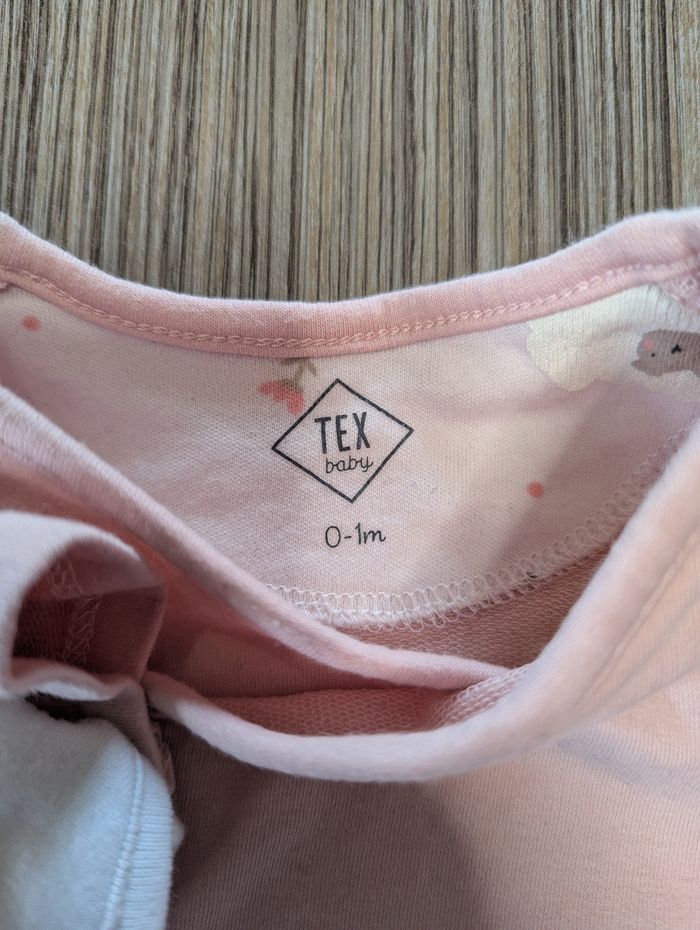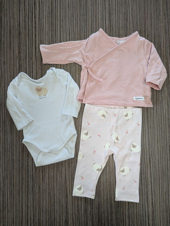 Ensemble body + gilet + pantalon Avec dessin de mouton et de fleurs Couleur rose, brun et blanc Taille 0-1 mois Marque Tex baby