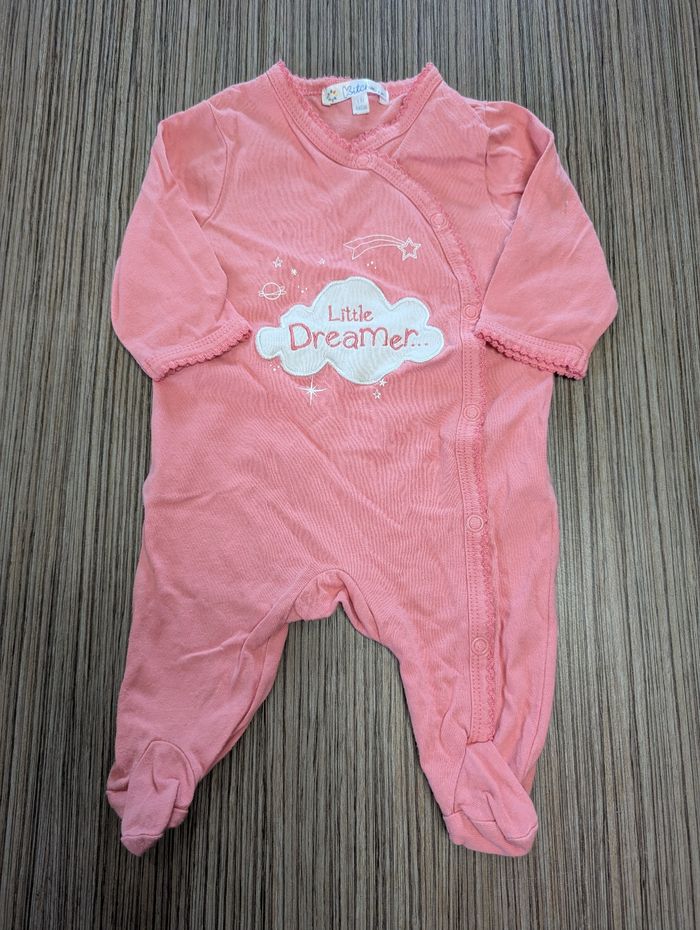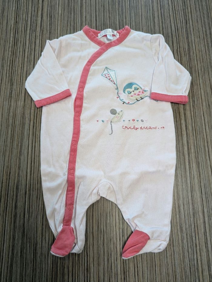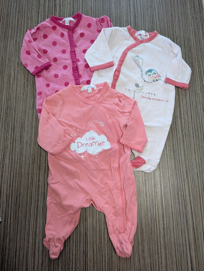 Lot de 3 grenouillères Couleur rose et fushia Avec dessin d'étoiles, de nuages, de souris et de hibou Taille 1 mois / 54 cm Marque Kitchoun