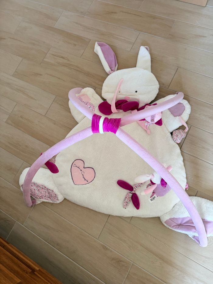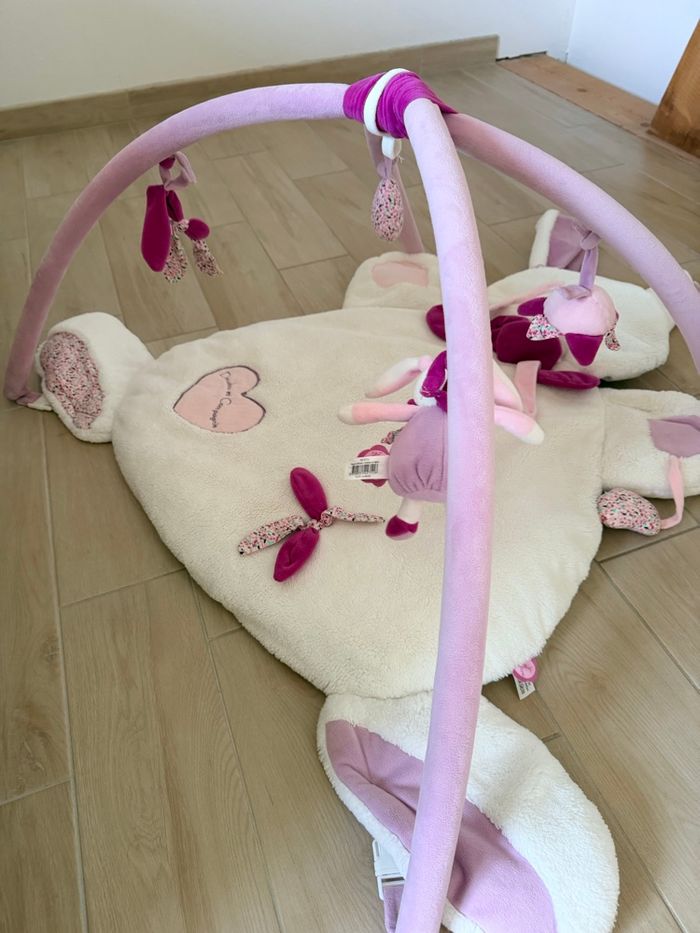 Tapis d’éveil doudou et compagnie, scratch un peu usé mais fait encore l’affaire avec un petit noeud