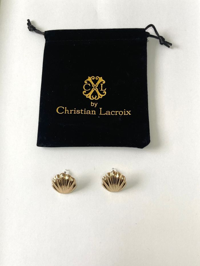 Boucles d'oreilles dorées coquillages style rétro by Christian Lacroix - photo numéro 1