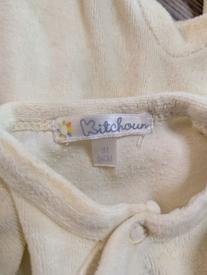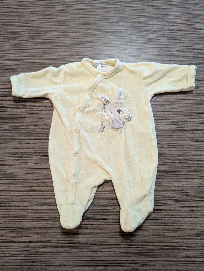 Grenouillère Avec broderie lapin Couleur jaune et blanc Taille 1 mois / 54 cm Marque Kitchoun