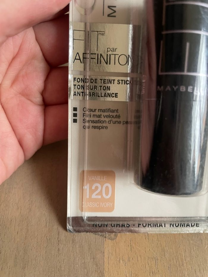 Maquillage Fond de teint Stick Maybelline Teinte 120 Vanille - Classic Ivory Cœur Matifiant Finit mat velouté Sensation d’une peau qui respire Gamme Fit me ! Neuf sous blister