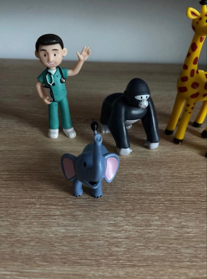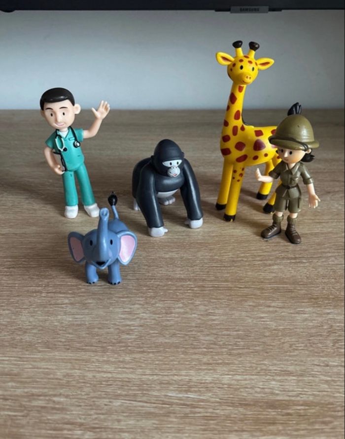 Lot 5 Figurines les animaux rba Personnage du livre -l’infirmière Paula -le vétérinaire -le gorille -la girafe -l’éléphant