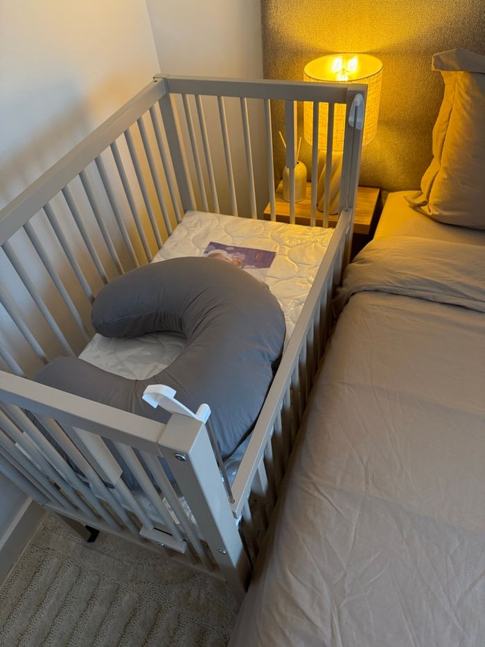 Je vends un berceau cododo ( avec matelas) en très bon état, très peu utilisé et bien entretenu. 📏 Dimensions lit : 95*55cm ( matelas 90*50cm) 🎨 Couleur : beige 🛌 Matelas : inclus Hauteur réglable 📦 Démonté et prêt à être récupéré Le lit est solide, stable et propre. 💶 Prix : 150€ 📍 À récupérer sur la Garenne colombes 92250