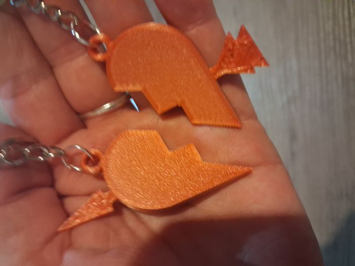 Partagez votre cœur avec ce duo de porte-clés originaux. Un cœur orange transpercé d'une flèche qui se sépare en deux. Parfait pour les couples ou les meilleurs amis. Design moderne et léger. Prix : 5€ #saintvalentin #cadeaucouple #portecle #amour #beebs