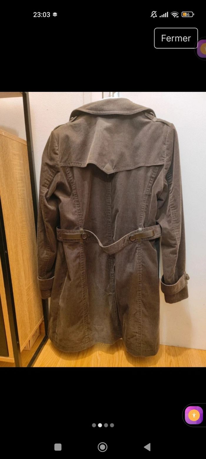Trench en velours côtelé marron – Caroll – Coupe élégante – Très bon état - photo numéro 3