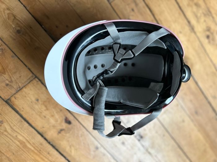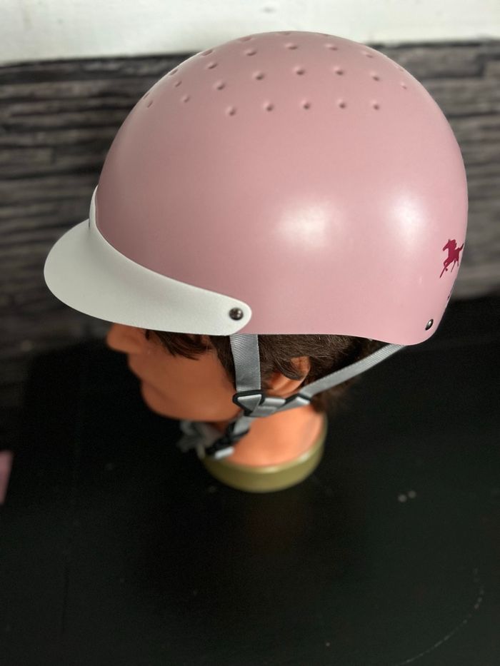 Casque équitation rose Visière blanche Rembourrage mousse Fouganza Decathlon Taille S tour de tête 52-55 cm Réglable avec mollette