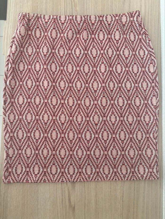 Jupe neuve, tissu extensible Couleur rose, taille 36 Arrive au dessus des genoux, 46cm de longueur Marque Promod