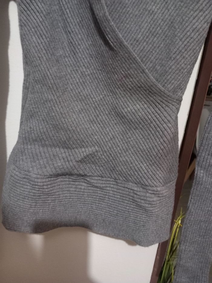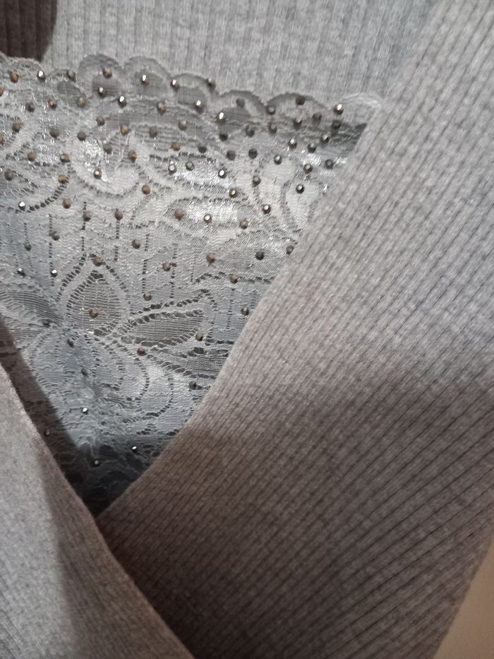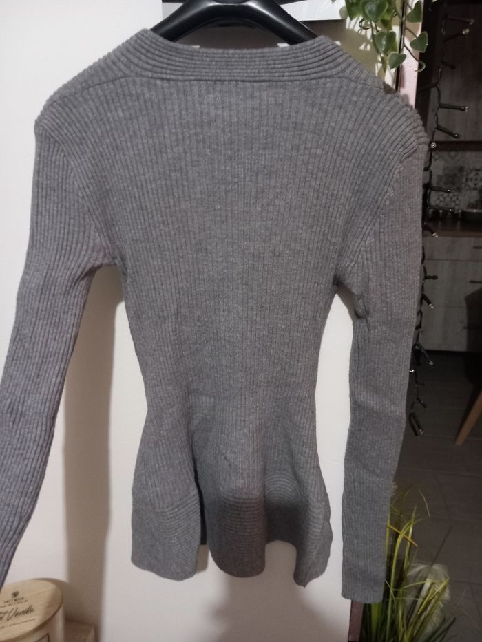 Pull gris col V  - photo numéro 3