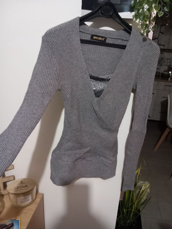 Pull gris col V  - photo numéro 2