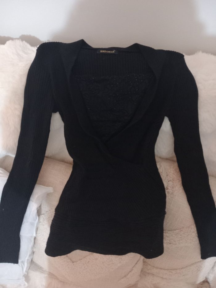 Pull noir col V - photo numéro 2