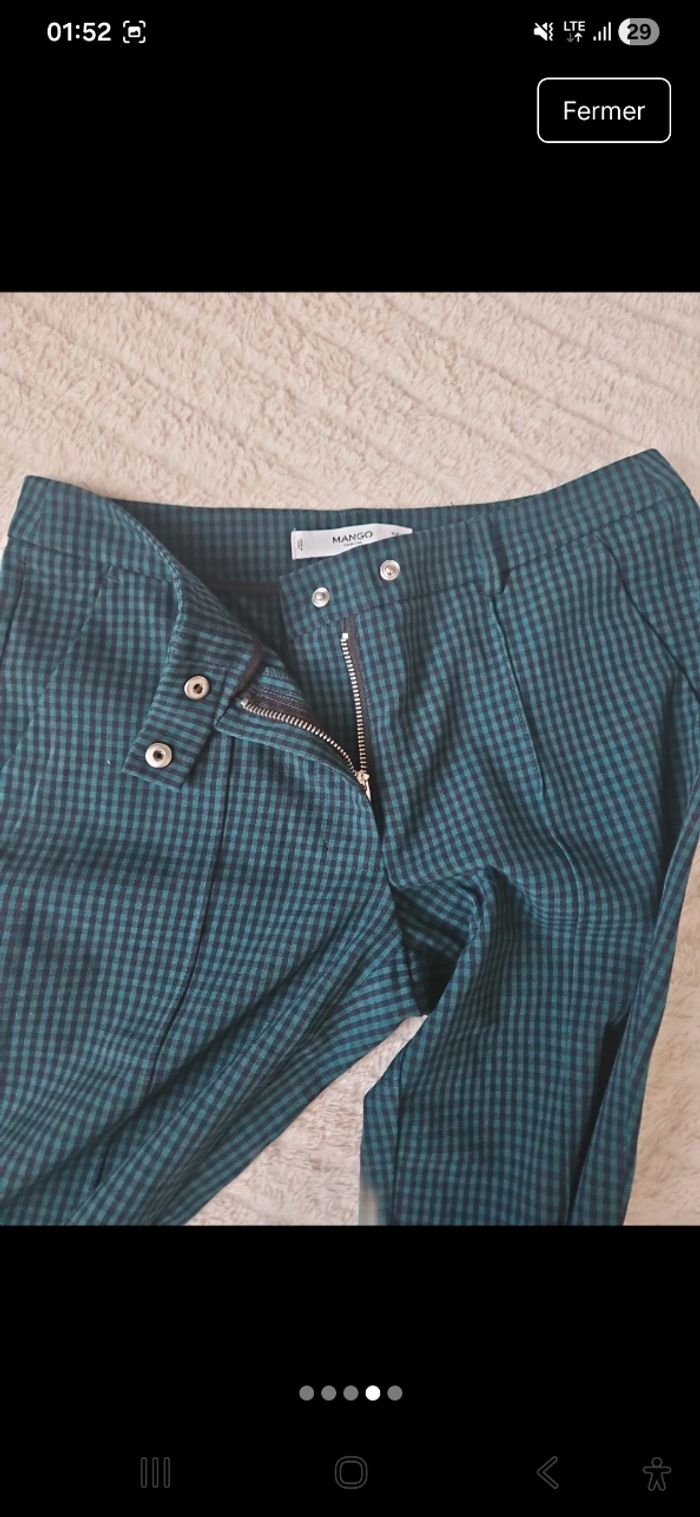 Pantalon à carreaux vert et noirs Mango Taille M Longueur 92cm Neuf