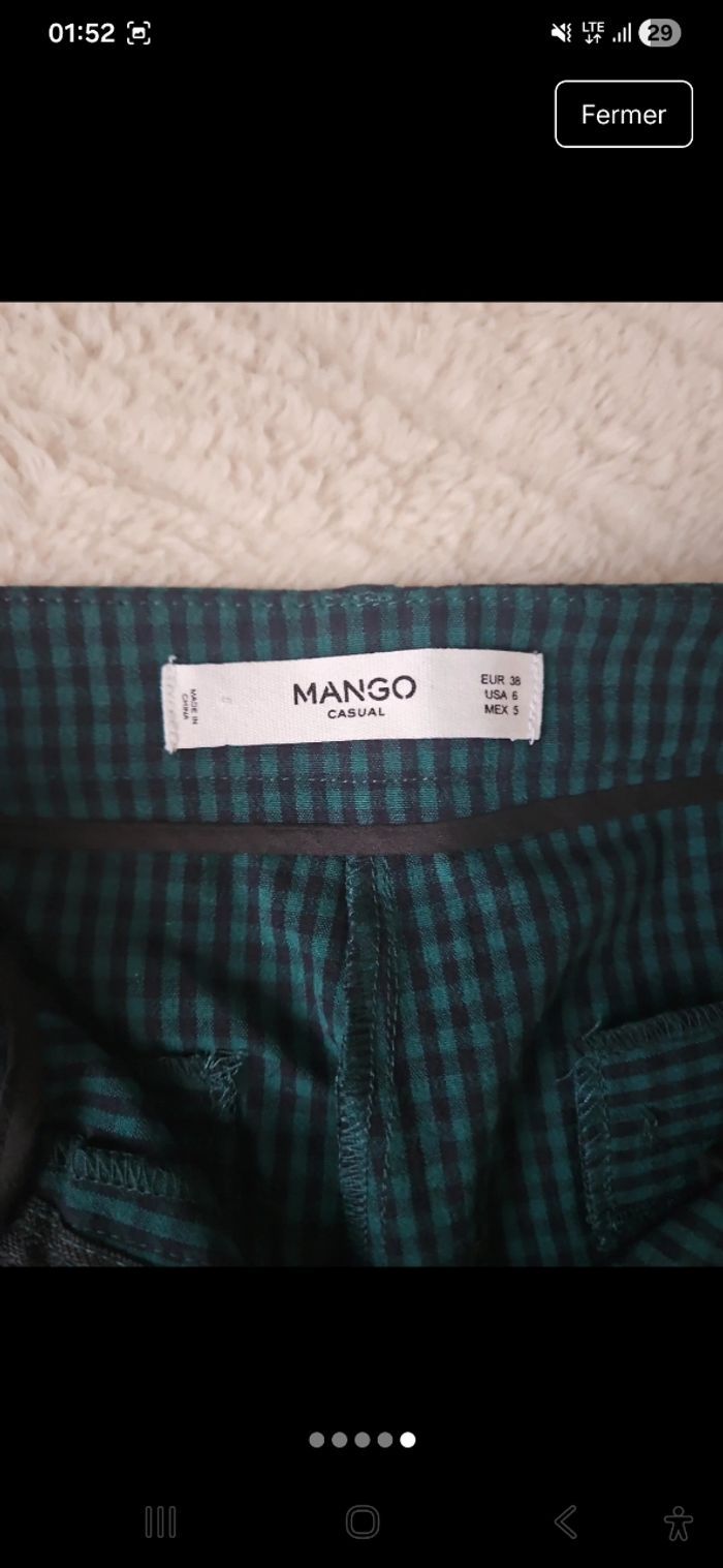 Pantalon à carreaux vert et noirs Mango Taille M Longueur 92cm Neuf