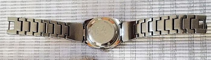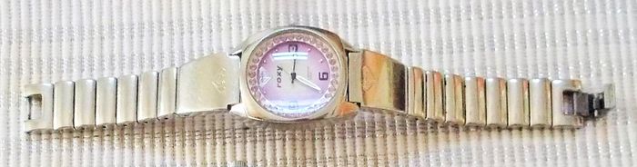 Montre ROXY "Wonder", boîtier en acier argenté de 25 mm, à intérieur légèrement mauve et blanc, aiguilles argent, et bracelet enacier argenté réglable pour poignet de 16 ou 17 cm, tbé, fonctionnante, pile fourni, prix définitif.
