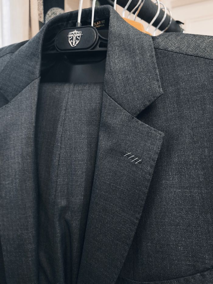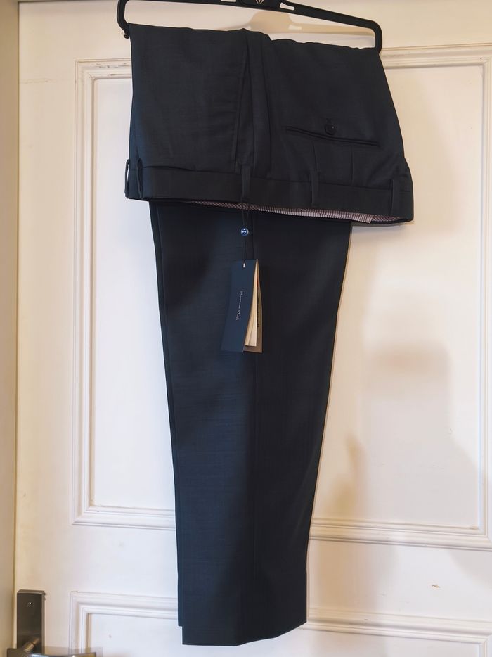 Costume Homme 2 pièces élégant gris anthracite légèrement chiné, jamais porté, vendu avec sa housse d’origine. • Marque : Massimo Dutti • État : neuf avec étiquettes • Fabrication : Made in Portugal • Tissu haut de gamme : Finest Italian Fabric – laine Super 120’s Veste > prix d’origine 249,00 € • Taille EUR 52 • 100 % laine – doublure viscose • Coupe élégante, fermeture 2 boutons Pantalon > prix d’origine 79,95 € • Taille EUR 46 (Regular Fit) • 100 % laine – doublure coton/polyester • Poches latérales + poche arrière boutonnée Parfait pour travail, cérémonie, mariage ou occasions habillées