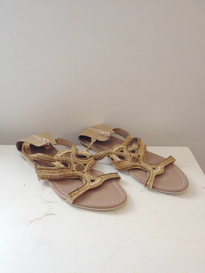 Sandales d'été bohème cuir dorées playa 38 - photo numéro 1