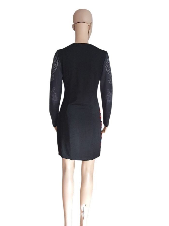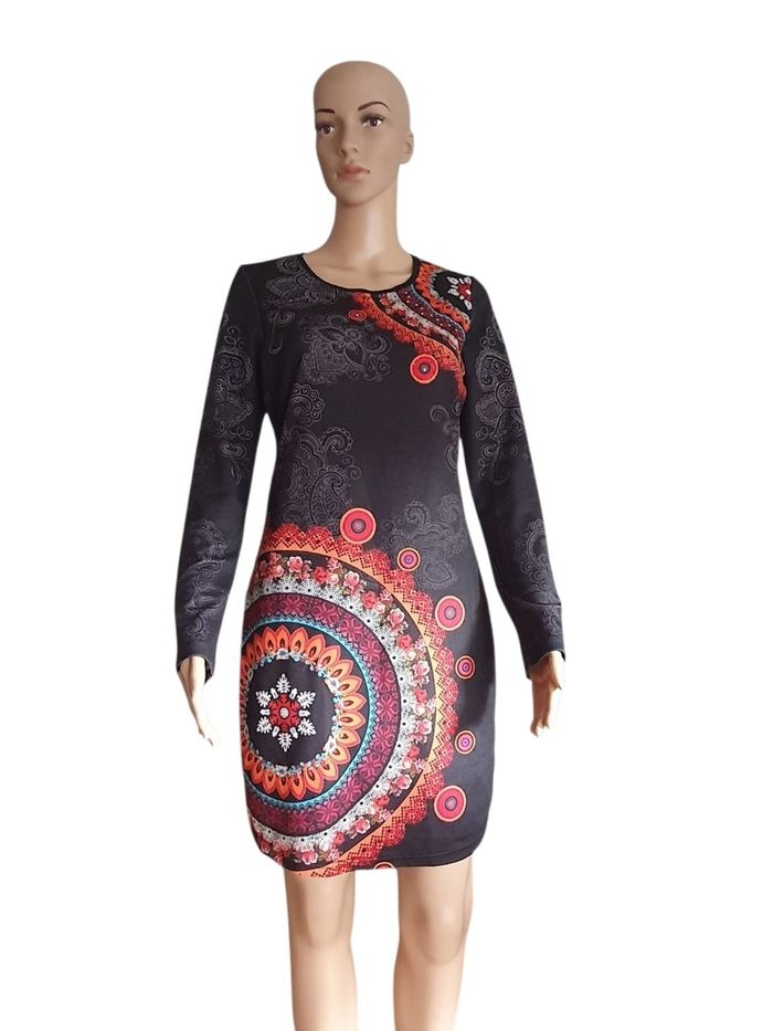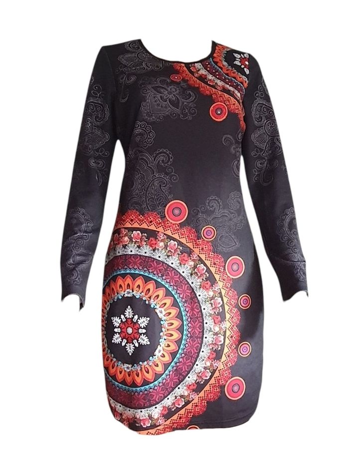 🖤 Un imprimé kaléidoscope riche en détails sur un fond noir profond qui affine la silhouette.  ❤️ Sa matière fluide et extensible épouse les  formes sans marquer, pour une liberté de mouvement totale.  📏 Marque: 101 idées  Taille 38  Longeur : 84cm  🌟 Très bon état