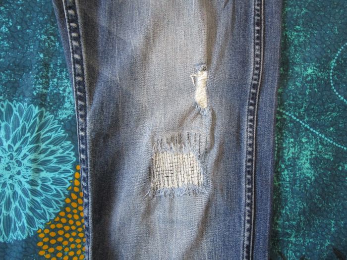 Jean Calvin Klein femme coupe sculted slim effet troué Taille 42 W33 L34 Bleu (J255) - photo numéro 7