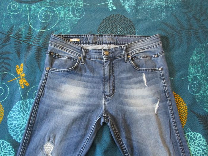 Jean Calvin Klein femme coupe sculted slim effet troué Taille 42 W33 L34 Bleu (J255) - photo numéro 1