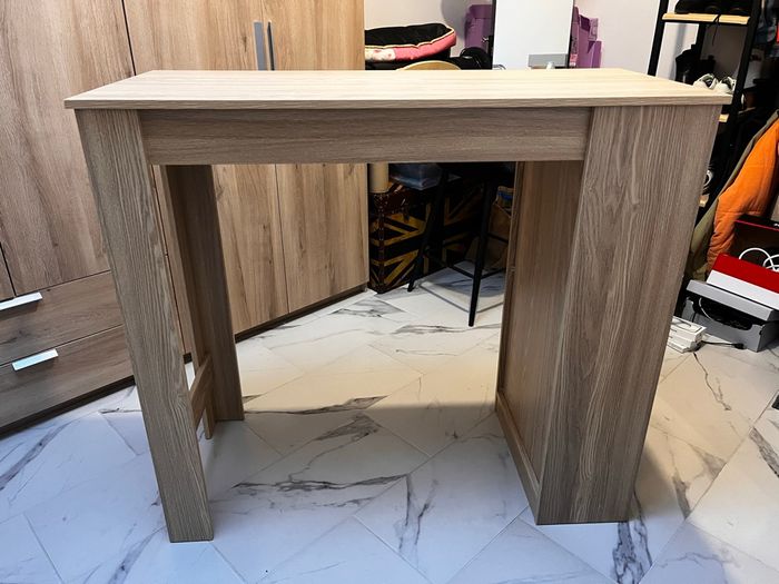 Je vends ce meuble bar en bois avec 2 tabourets assortis. - Type de produit : Meuble bar avec 2 tabourets - Matériau : Bois - Couleur : Bois naturel - Fonctionnalités : Meuble bar avec étagères de rangement - Mobilier de cuisine et salle à manger Très bon état N'hésitez pas à me contacter pour plus d'informations ou de photos. À venir récupéré directement sur Ribécourt