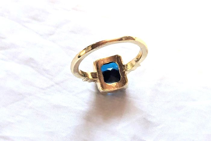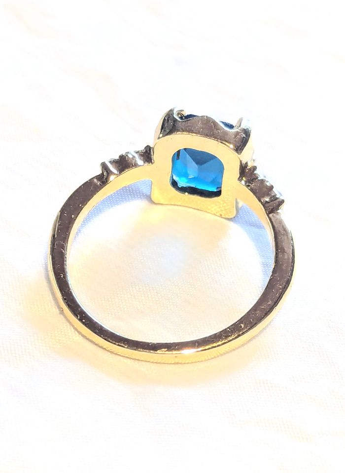 Bague Fine Grosse Pierre Rectangulaire Bleue Socle Pierres Blanche Strass Bijou Doré Fantaisie Femme - photo numéro 3