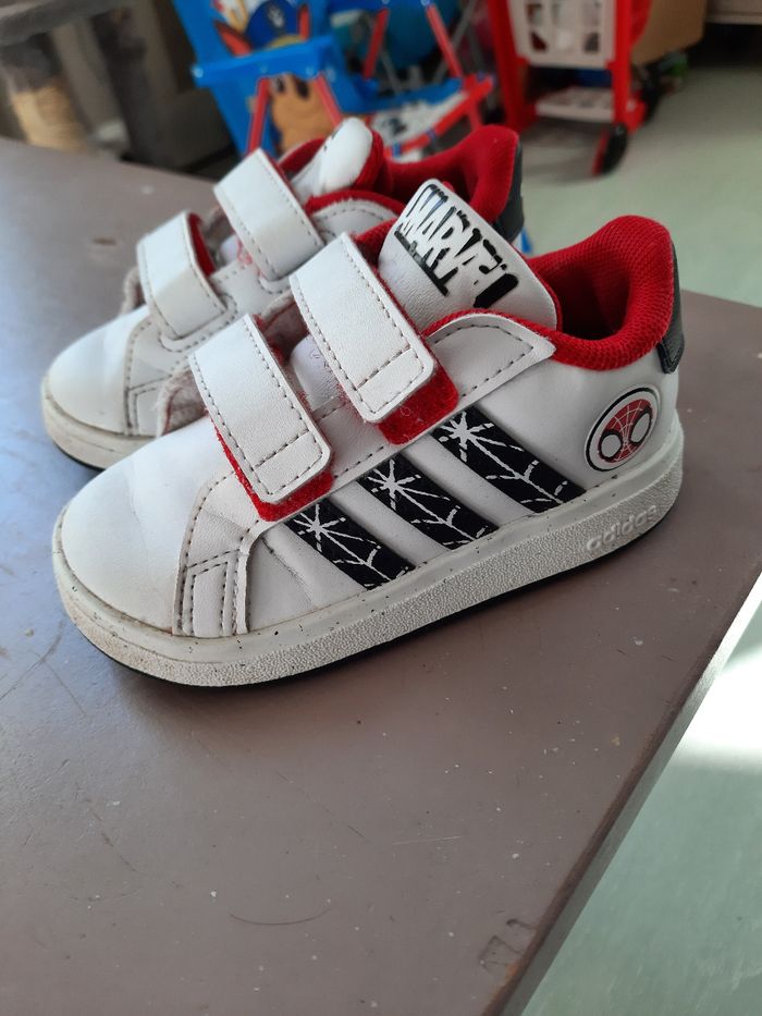 Vend baskets adidas spiderman pointure 22 , portant des traces d'usures au niveau de la semelle gauche où l'écriture est partie (voir photo) ainsi que le marvel sur la languette. Mais peut être encore portable car bon état général 3 euros