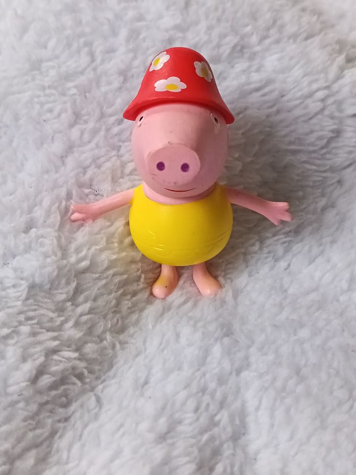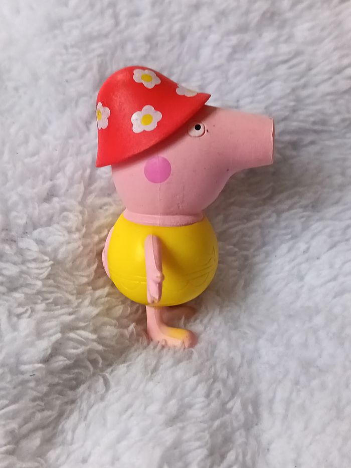 Adorable figurine de Peppa Pig prête pour les vacances ! Détails : Peppa porte un maillot de bain jaune et un chapeau de soleil rouge à fleurs. Dimensions : Hauteur de 7 cm. État : Bon état global. Présente de légères petites marques d'usage (visibles sur les photos de détail du maillot jaune). Idéal pour les fans du dessin animé, pour jouer ou pour une collection. Envoi le mardi et le vendredi. Pensez aux lots pour économiser sur les frais de port ! #skms62141_peppapig #peppapig #figurinepeppapig #jouetenfant #peppabeach #peppaàlaplage #figurine7cm #collectionpeppapig #peppapigtoy #enfant
