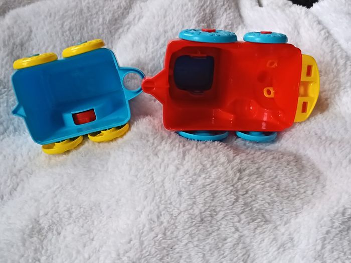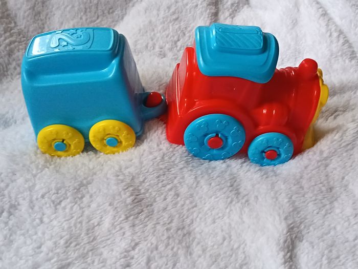 Vends train Disney Baby Clementoni (modèle 2019) comprenant la locomotive rouge et un wagon bleu. ⚠️ À LIRE ATTENTIVEMENT : Dimensions : L'ensemble mesure environ 29 cm. État : Le jouet est incomplet. Il manque les personnages à insérer ainsi que d'autres wagons du set d'origine. Détails : Présence de roues avec motifs Mickey et engrenages manuels. Idéal pour compléter un lot ou pour un enfant qui possède déjà les figurines. Jouet robuste, propre et en bon état cosmétique (voir photos pour les détails). Envoi le mardi et le vendredi. 📦 #skms62141_mickey #disneybaby #clementoni #trainmickey #jouetpremierage #mickeymouse #piecesdetachees #jouetbebe #disney