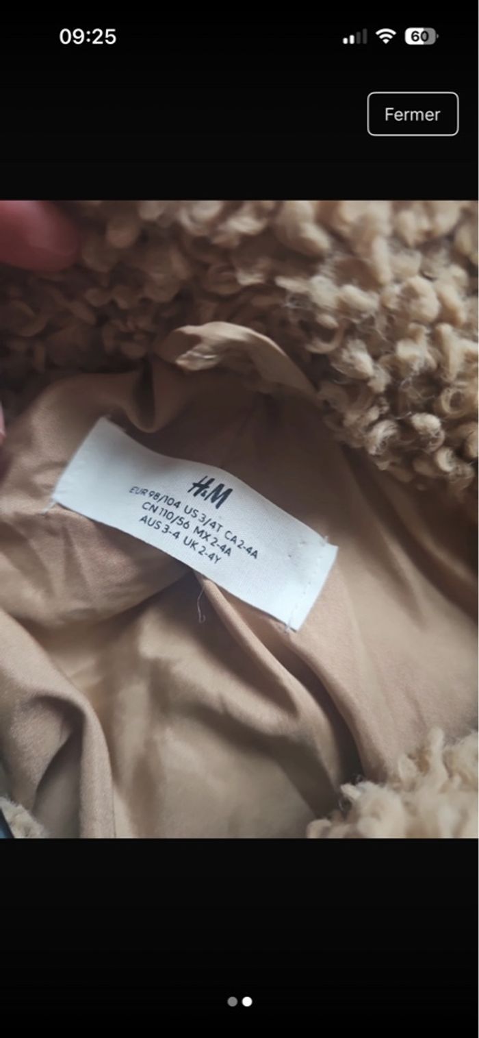 Manteau chaud Taille 2/4 ans H&M Très bonne état