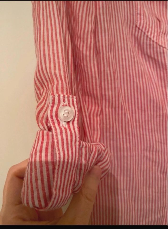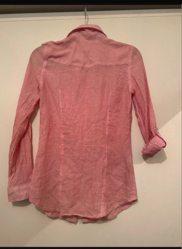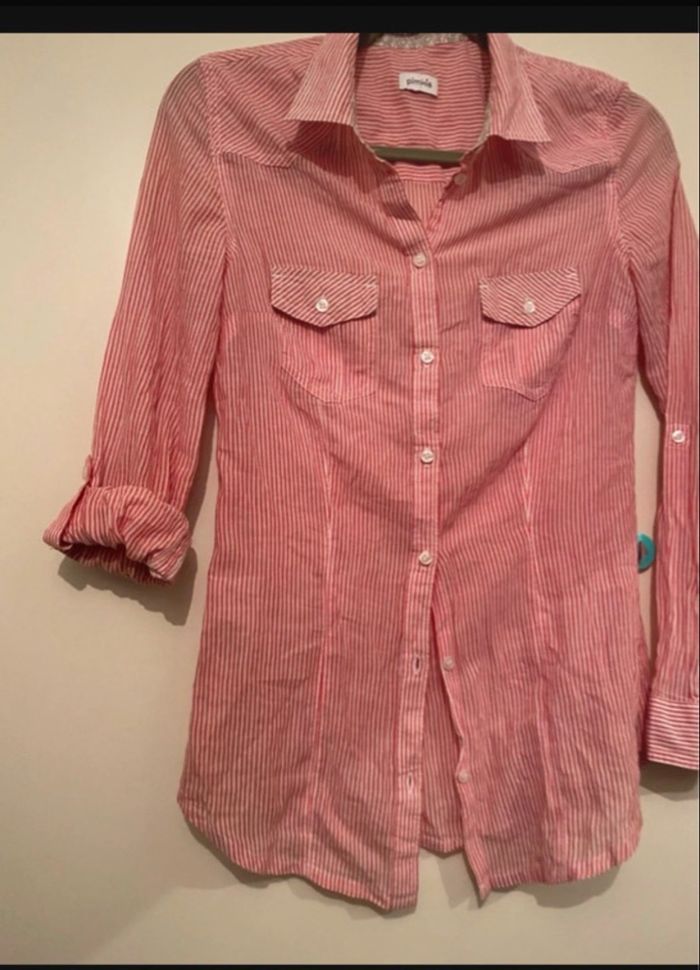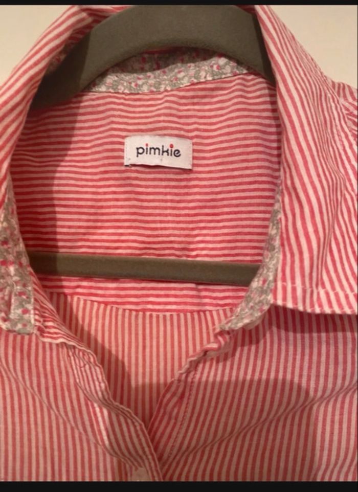 Chemise Pimkie à manches longues, convertible en manches 3/4 grâce à un systeme de patte d'attache une fois les manches retroussées. Excellente état , taille XS.