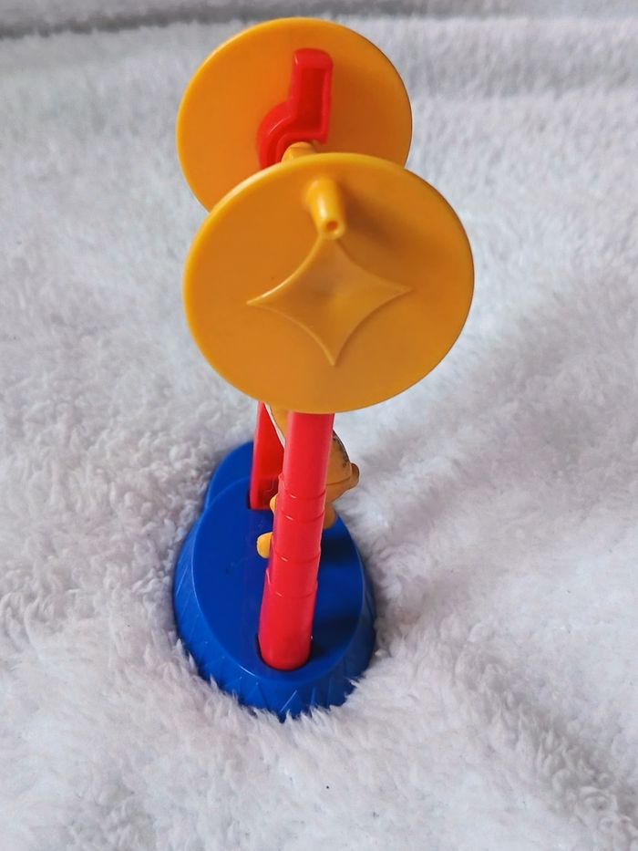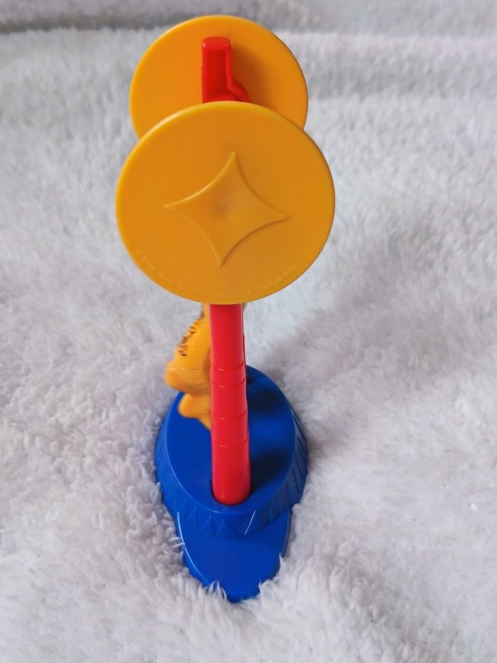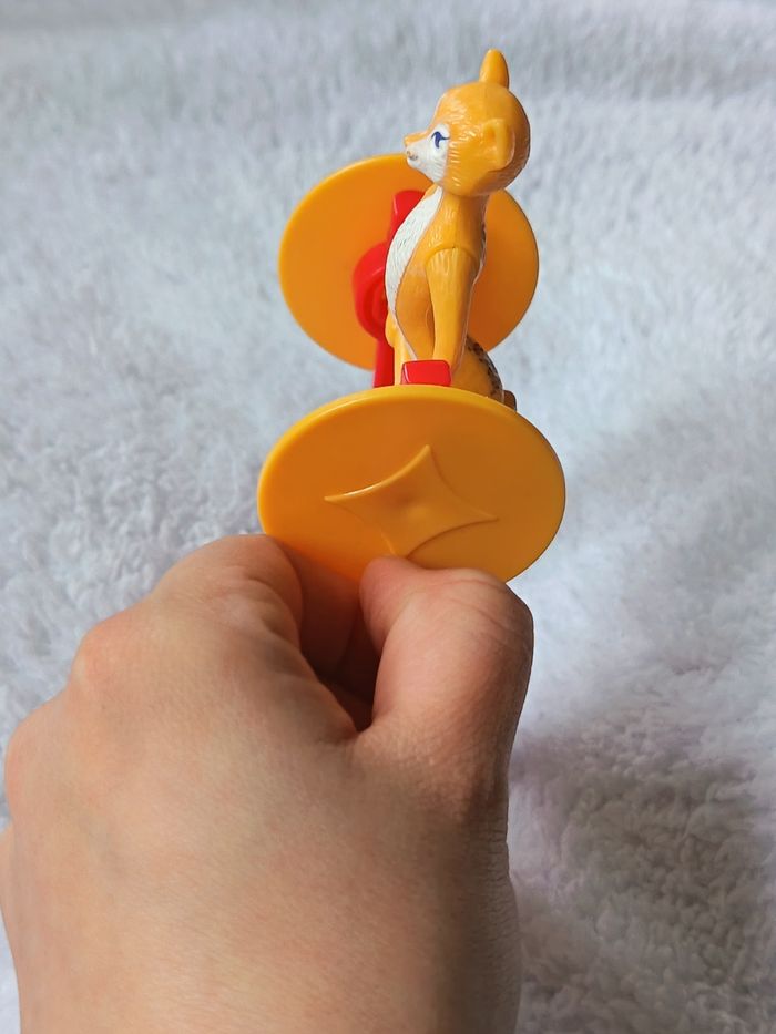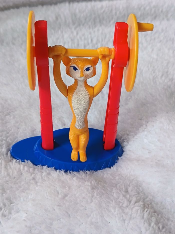 Figurine de Gia la panthère issue de la collection McDonald's Happy Meal pour le film Madagascar 3 : Bons baisers d'Europe. Le jouet représente Gia en pleine performance de cirque sur son trapèze. Action : Lorsqu'on tourne la petite manivelle jaune sur le côté, Gia fait des pirouettes (un tour complet à 360°). État : Très bon état général (voir photos pour les détails de peinture). Mécanisme fonctionnel. Dimensions : Mesure environ 12 cm de hauteur. Marquage : © DWA (DreamWorks Animation) - Made for McDonald's 2012. Parfait pour compléter une collection ou pour un fan de l'univers Madagascar ! #skms62141_madagascar #Madagascar3 #Gia #Panther #DreamWorks #McDonalds #HappyMeal #VintageToy #Cirque #Figurine #JeuxEnfant