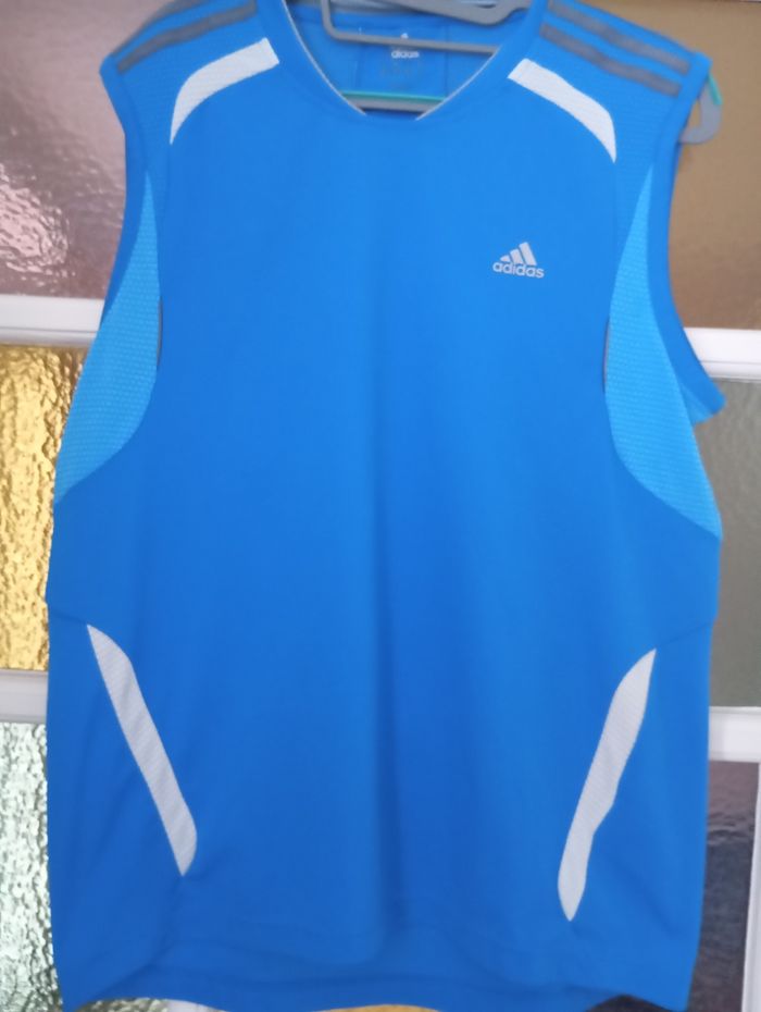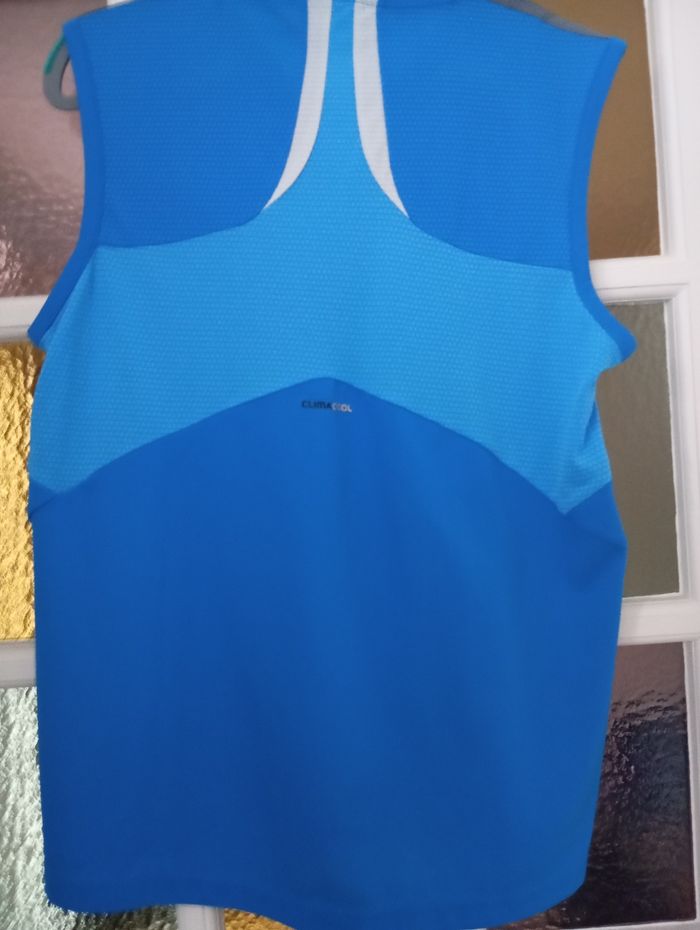 En très bon état Marque Adidas Taille L pour moi Largeur épaule 43 cm Largeur sous bras 52cm Longueur 69 cm Couleur bleu