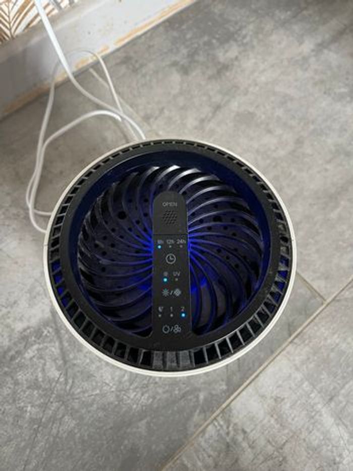 Purificateur d’air acheter en 2022 très peux utiliser. Fonctionne parfaitement voir photo. Il y a plusieurs mode, mode nuit il fait moins de bruit et 1 et 2. Il y a une lumière et UV. Possibilité de le régler 6h/12h/24h.