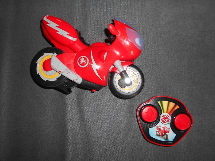 Vends Ricky Zoom, la moto télécommandée de la marque Tomy: avance, tourne sur elle-même et fait du wheeling, reproduit des sons du dessin animé... En bon état, fonctionne parfaitement...