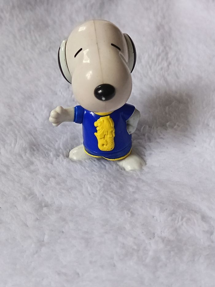 Belle figurine vintage de Snoopy représentant Singapour, issue de la célèbre collection "Snoopy World Tour" distribuée par McDonald's en 1999. Snoopy porte un costume bleu avec le célèbre Merlion (emblème de Singapour) jaune sur le devant. État : Bon état général pour son âge (27 ans !). À noter quelques légères traces d'usure sur la peinture (visibles sur les photos, notamment sur les oreilles et le nez), ce qui est normal pour une figurine vintage. Dimensions : Mesure environ 8 cm de hauteur. Détails authentiques : Inscriptions sous les pieds confirmant l'édition "UFS Singapore / McDonald's Corp 1999". Idéal pour les collectionneurs de l'univers Peanuts ou les nostalgiques des jouets Happy Meal des années 90 ! #skms62141_snoopy #Snoopy #Peanuts #McDonalds #Vintage #SnoopyWorldTour #Figurine #HappyMeal #JouetAncien